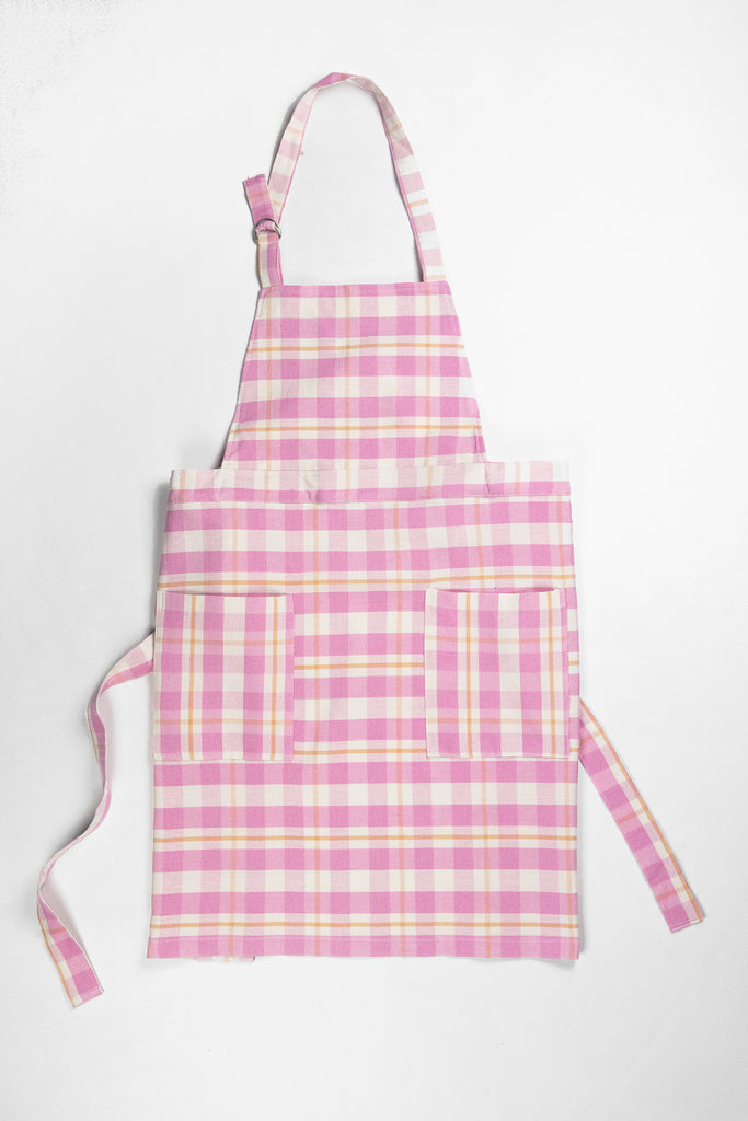 Available in four different colorways. 100% cotton with two tie back straps at waist and adjustable length at neck.