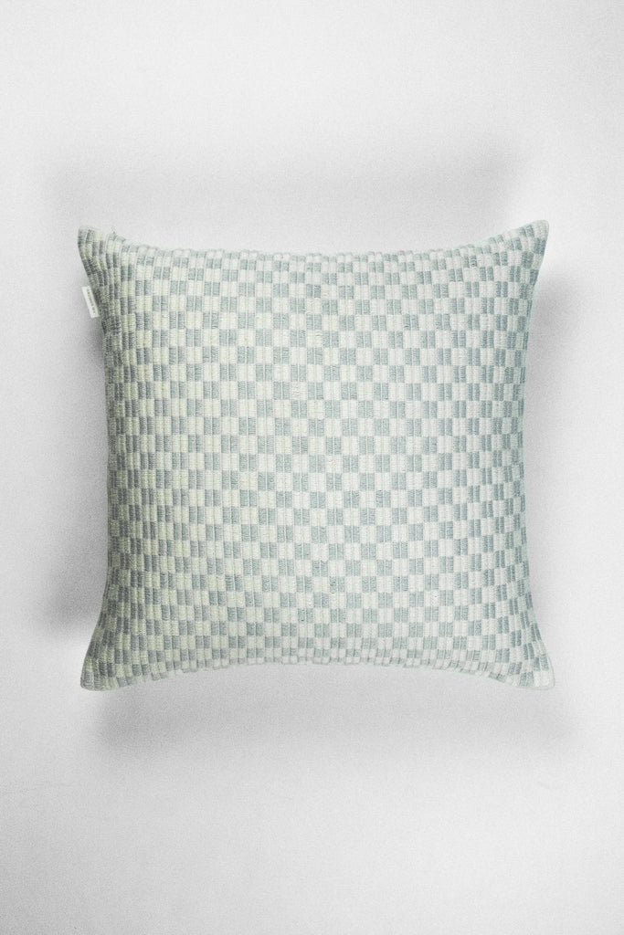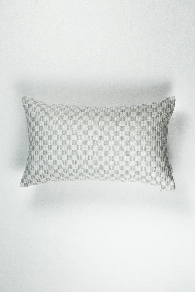 / Checkered Brocade Pillow - Grey & White
