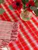 Our Camila plaid table runner is a bold and cheery addition to any dining or kitchen styling. Stripes of bright red, cranberry, pink and natural white are woven into a plaid pattern to create a colorful seasonal or year round textile.