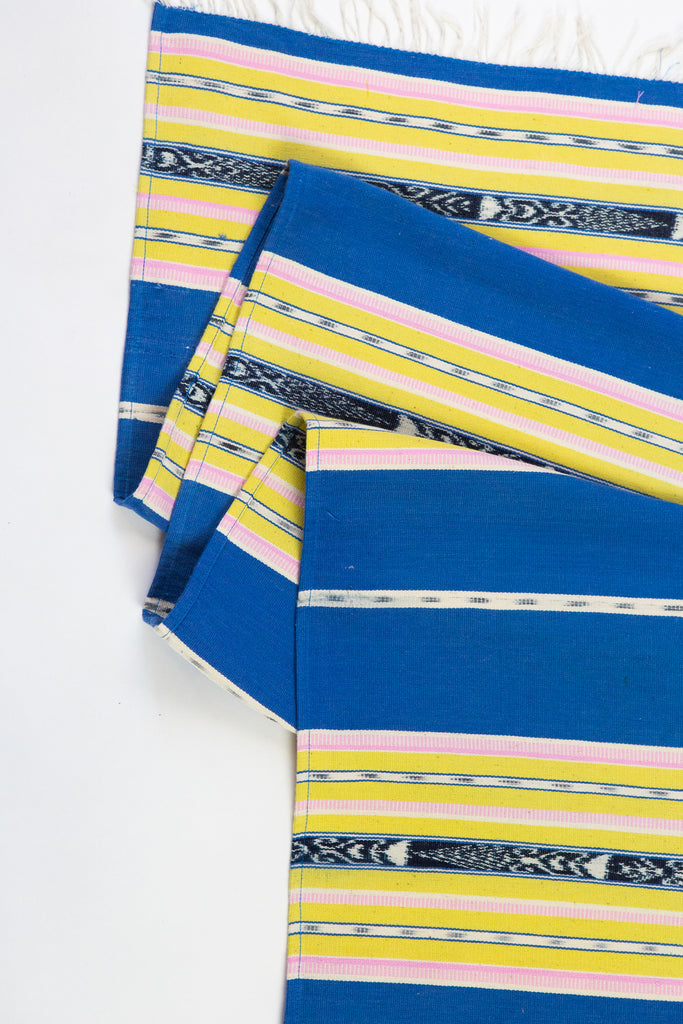 Bold colors and lines of hand dyed ikat (jaspe) are integral to this design, as well as the untreated natural cotton in vibrant colors. The final result is almost indistinguishable from its vintage counterpart.