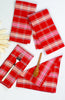 Our Camila Plaid napkins are a bold and cheery addition to any dining or kitchen styling. Stripes of bright red, cranberry, pink and natural white are woven into a plaid pattern to create a colorful seasonal or year round textile.