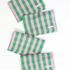 The Flora striped napkins are the perfect accent to add color and texture to any table setting. Stripes of light pink and kelly green are woven together to create this boldly colorful textile.