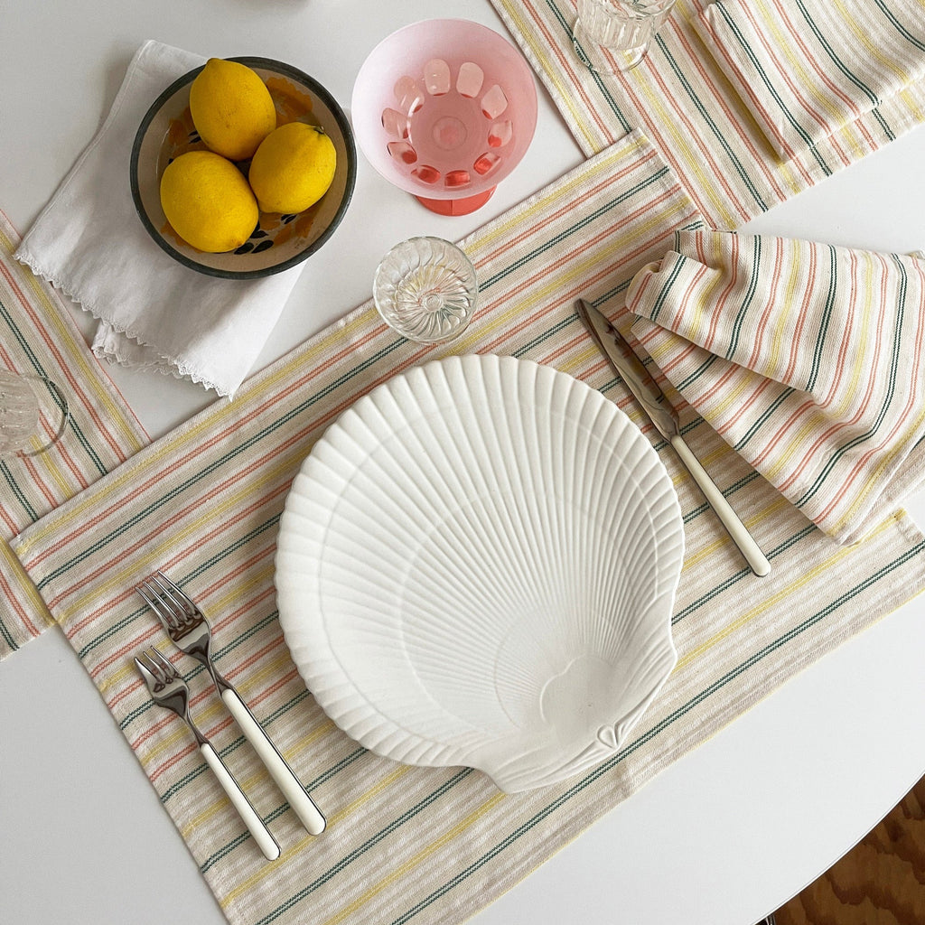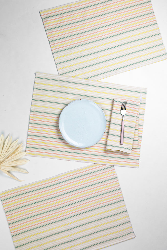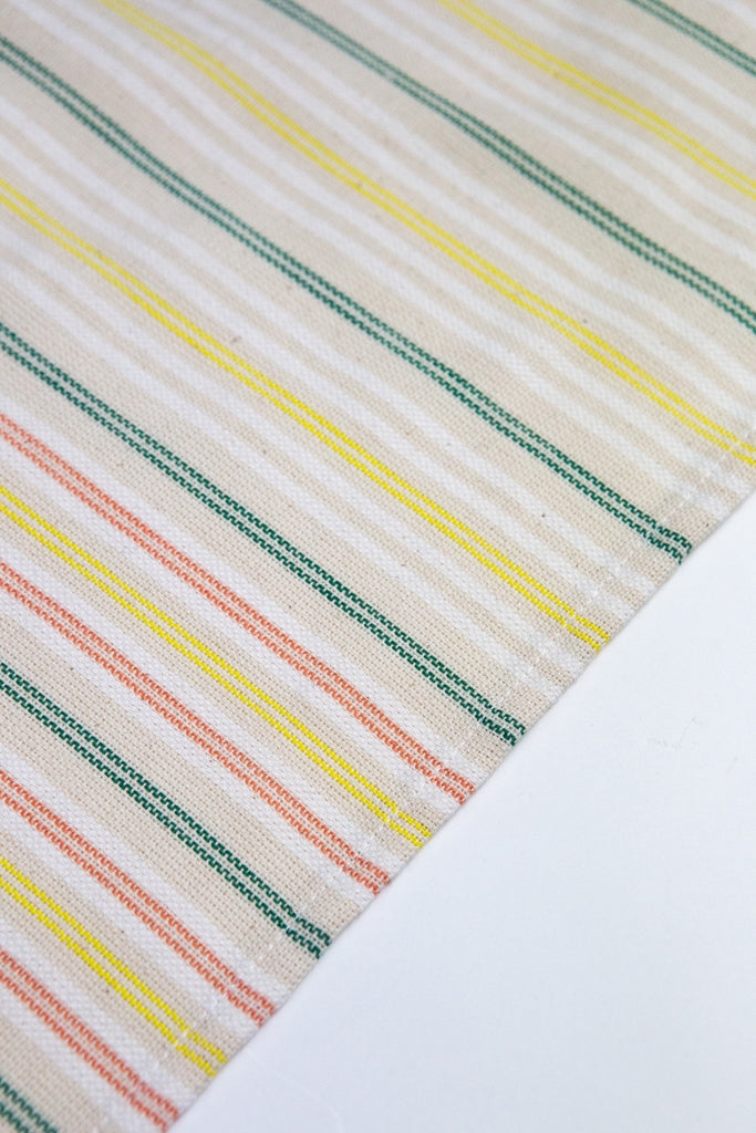 The Inez striped placemat is the perfect accent to any table setting. Stripes of lemon, green, and orange are woven together to create this citrusy colorful textile. Ethically handwoven by artisans in Xela, Guatemala.