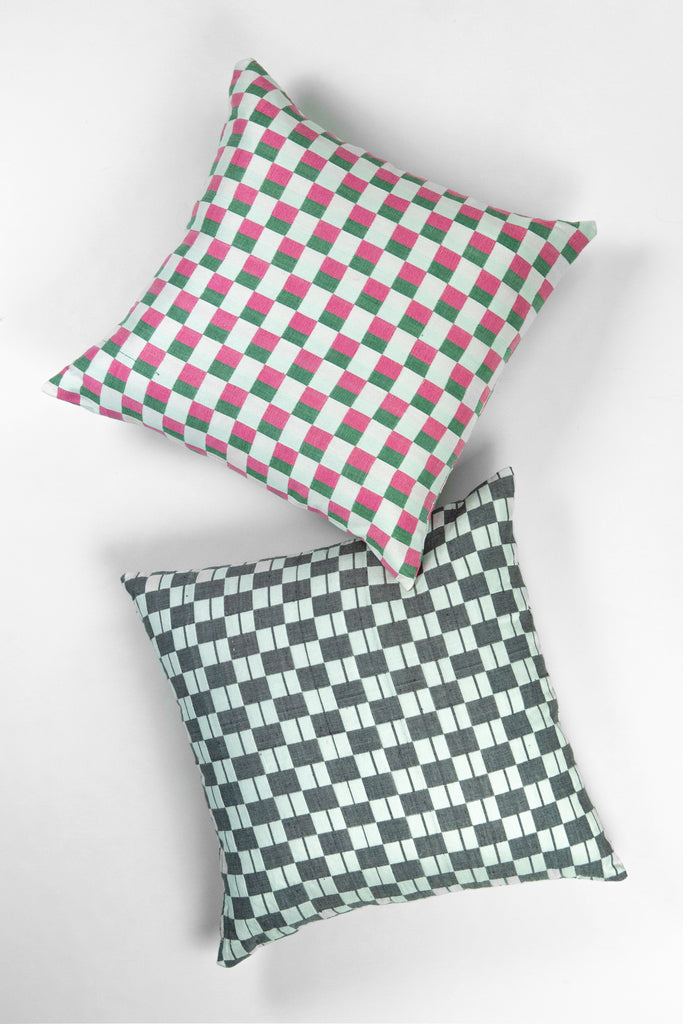 These gorgeous handwoven double-weave pillows from Gujarat India. Now only three families in India make this specialized weaving style that dates back to the 1860s.