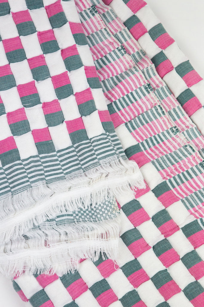 / Quilted Sujani Throw Blanket - Pink, Green and White