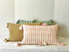 These pillows were hand-dyed with 100% natural plant dyes from the Palo Brasil tree. This textile was made in partnership an artisan group just outside of Antigua, Guatemala.