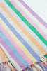 Our Maxine pastel rainbow striped towel will be a lively addition of color and texture to your kitchen or bathroom. A rainbow of light pink, kelly green, periwinkle, peach, cream, hyacinth, light yellow, sky blue and lilac are woven together to create this brilliantly colorful piece. Ethically handwoven by artisans in Xela, Guatemala.