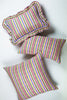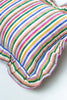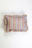 The Valentina ruffle rainbow striped pillow is the perfect rainbow accent to add color and texture to any sofa, bedroom or accent chair. Stripes of light pink, ochre, emerald, lilac, royal blue, umber and fuchsia are woven together to create this brilliantly colorful piece. Ethically handwoven by artisans in Xela, Guatemala.