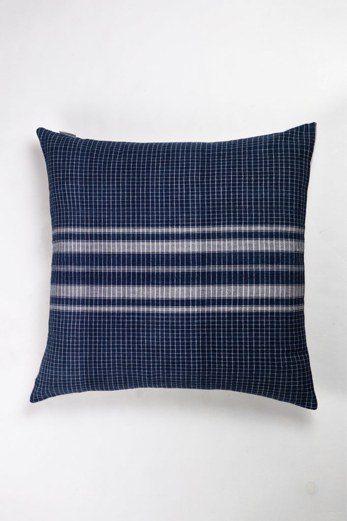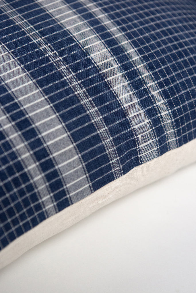 This indigo denim gingham pillow is the perfect accent to any decor style. Made from traditional Guatemalan skirt fabric, each pillow is handwoven on traditional footlooms by indigenous Maya artisans.
