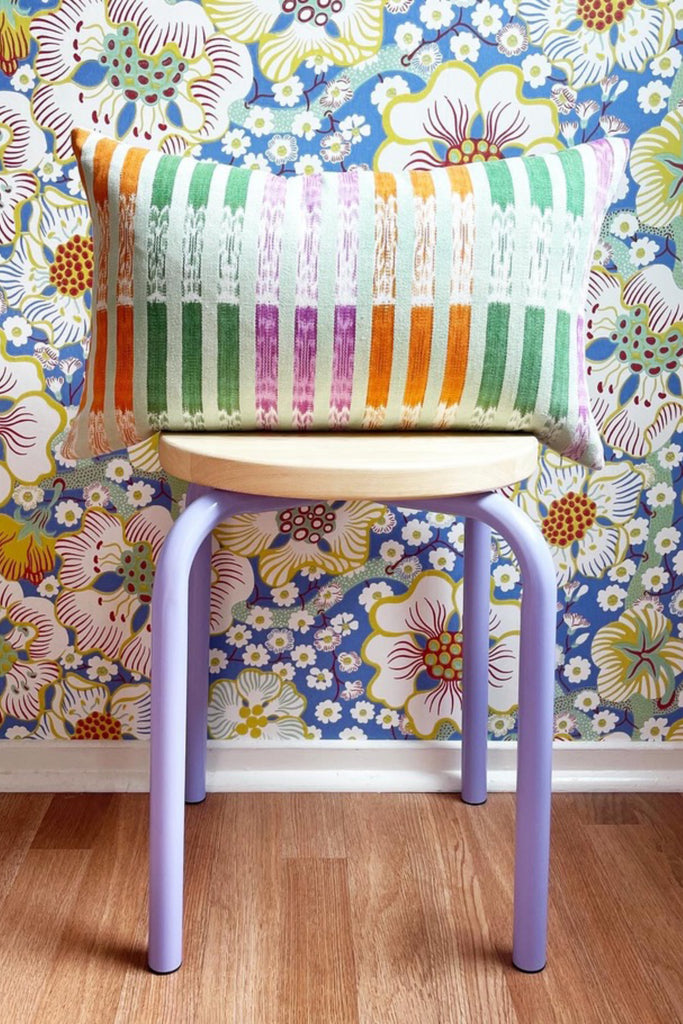 / Vintage Ikat Mint Green, Orange & Magenta Stripe Pillow