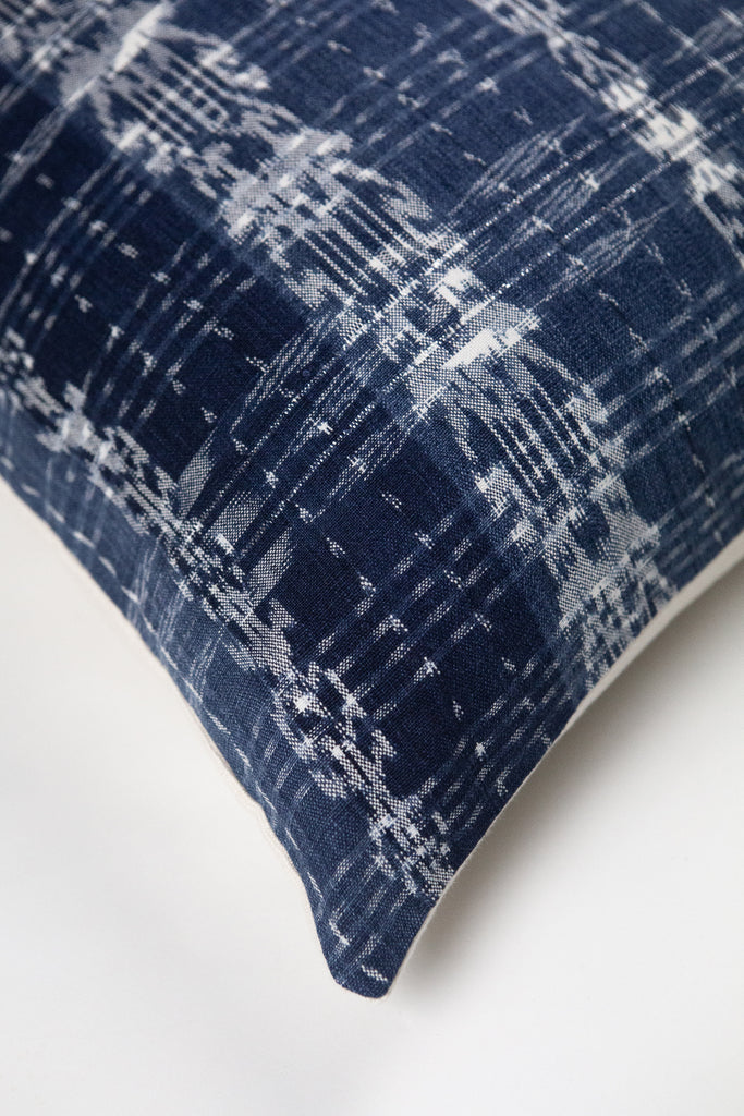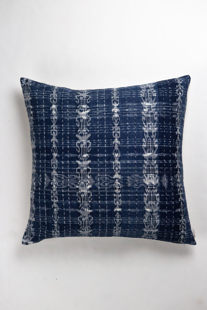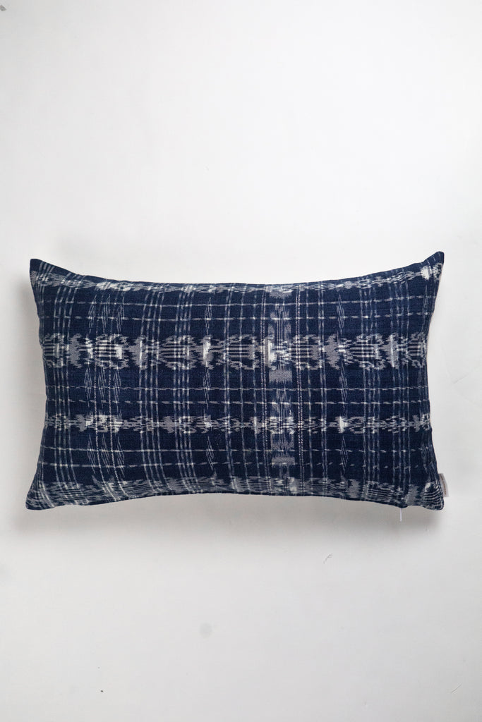 These pillows feature an intricate Guatemalan resist tie dye technique jaspe (also known as Ikat). With dark indigo and white, with delicate streaks of silver woven throughout, they are a perfect accent to any sofa or chair.