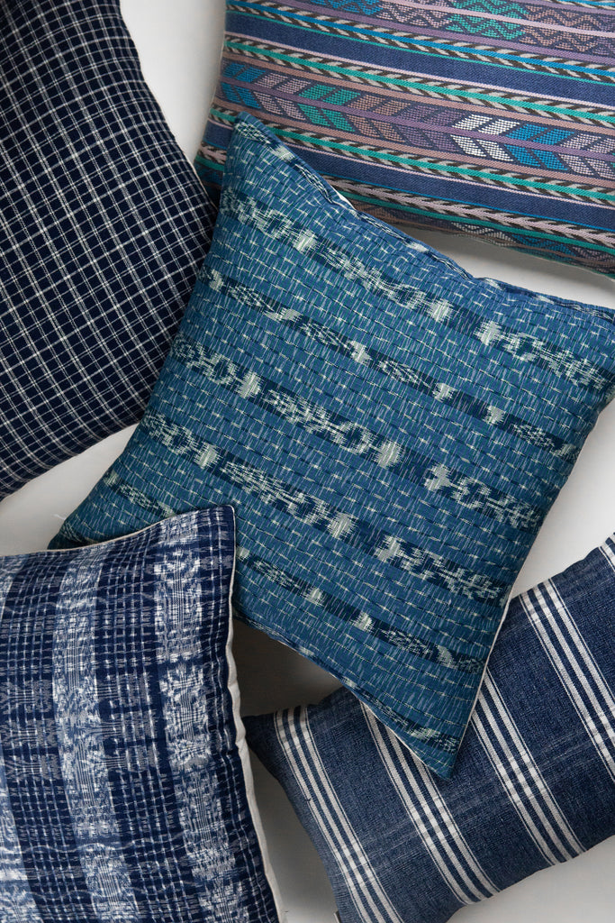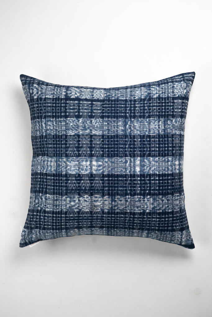 These pillows feature an intricate Guatemalan resist tie dye technique jaspe (also known as Ikat). With bold indigo and white ikat pattern, they are a perfect accent to any sofa or chair.