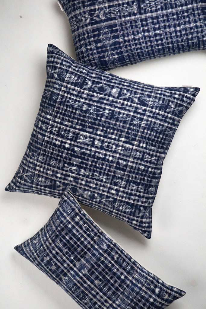 These pillows feature an intricate Guatemalan resist tie dye technique jaspe (also known as Ikat). With a softer hued indigo and white ikat pattern, they are a perfect accent to any sofa or chair.