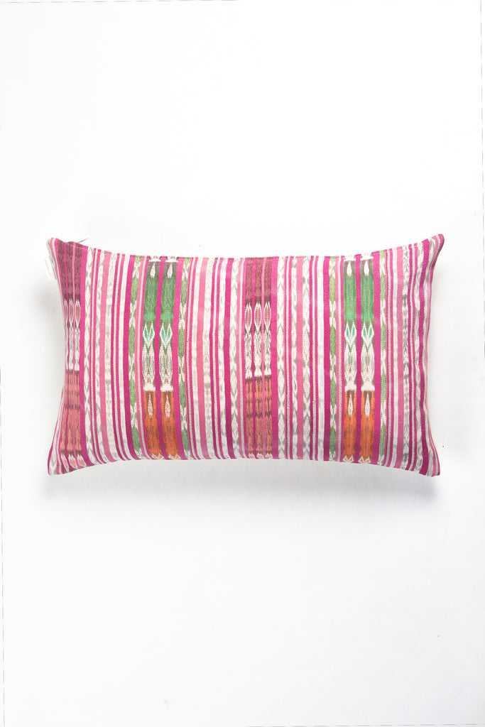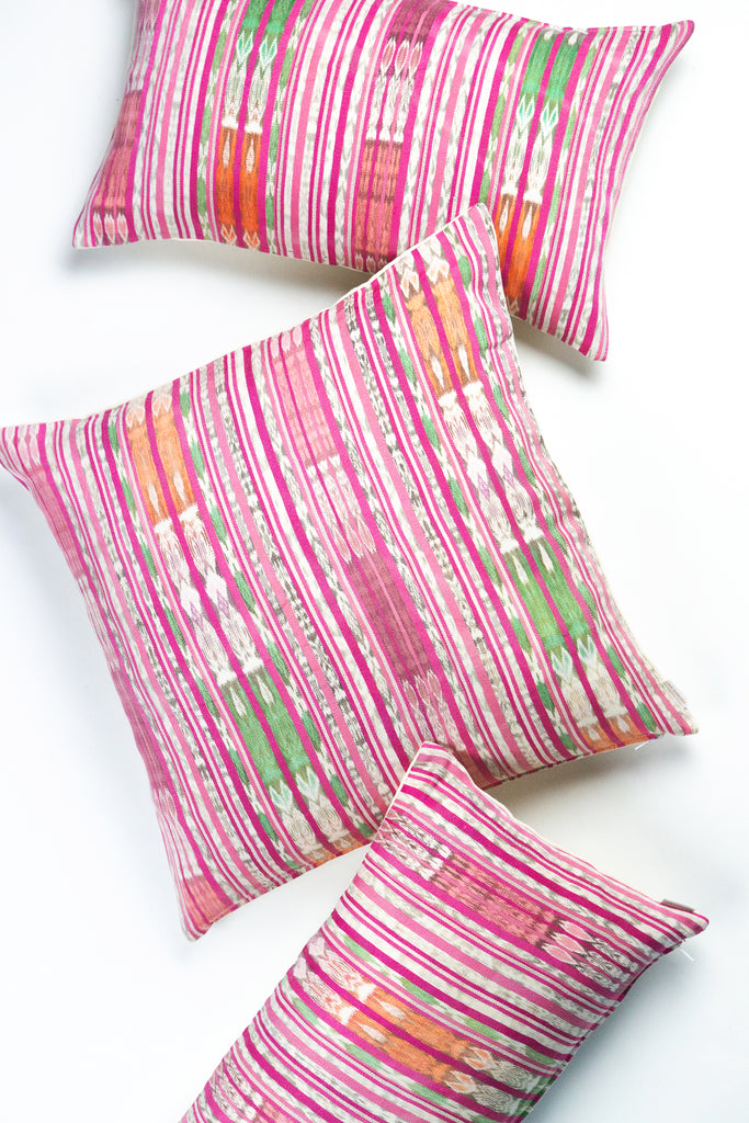 This pretty ikat patterned pillow is made from vintage handwoven fabric with a soft mauve, pale green, white and muted orange palette. It would be such a unique and lovely addition to any decor style.