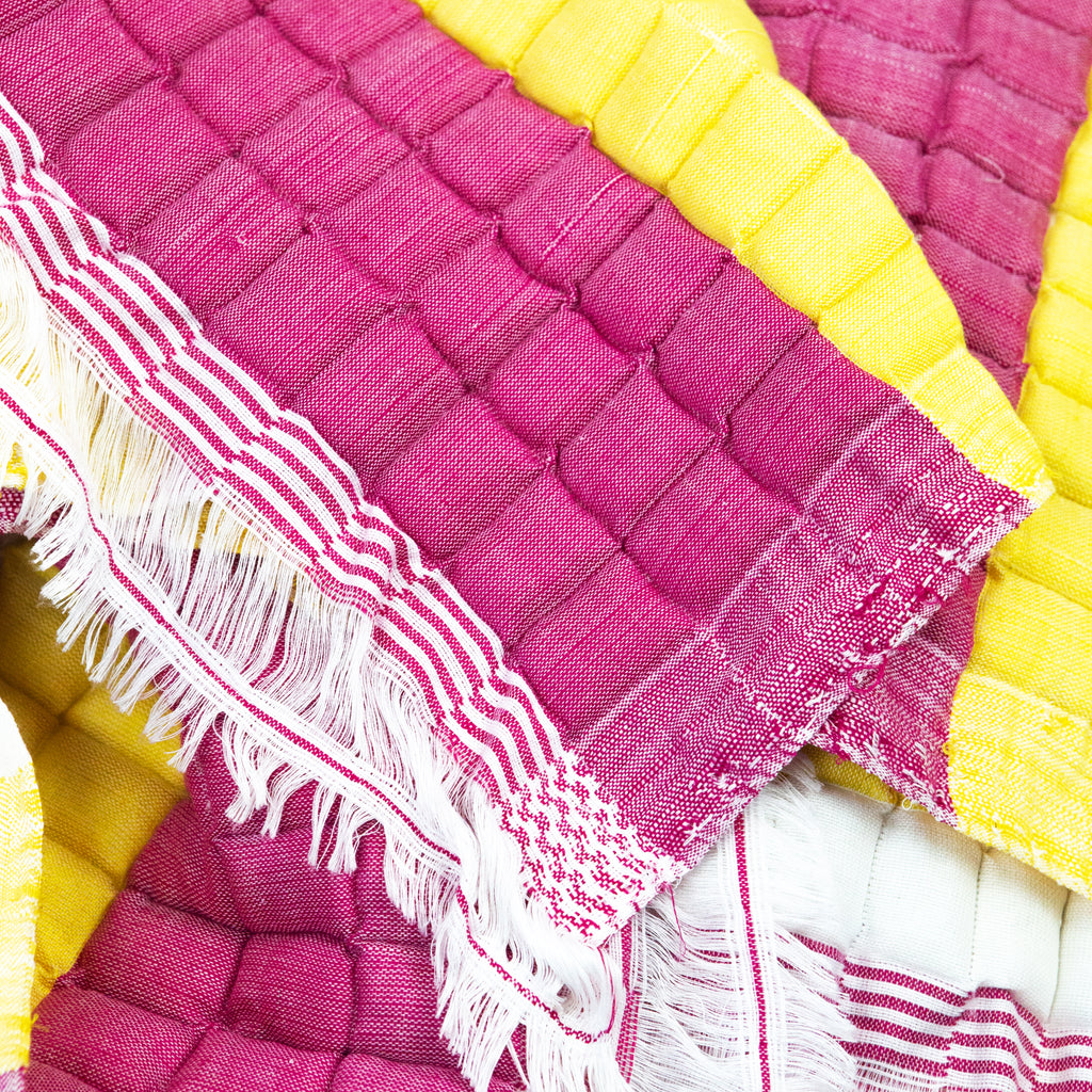 Quilted Sujani Throw Blanket - Yellow & Pink Stripe