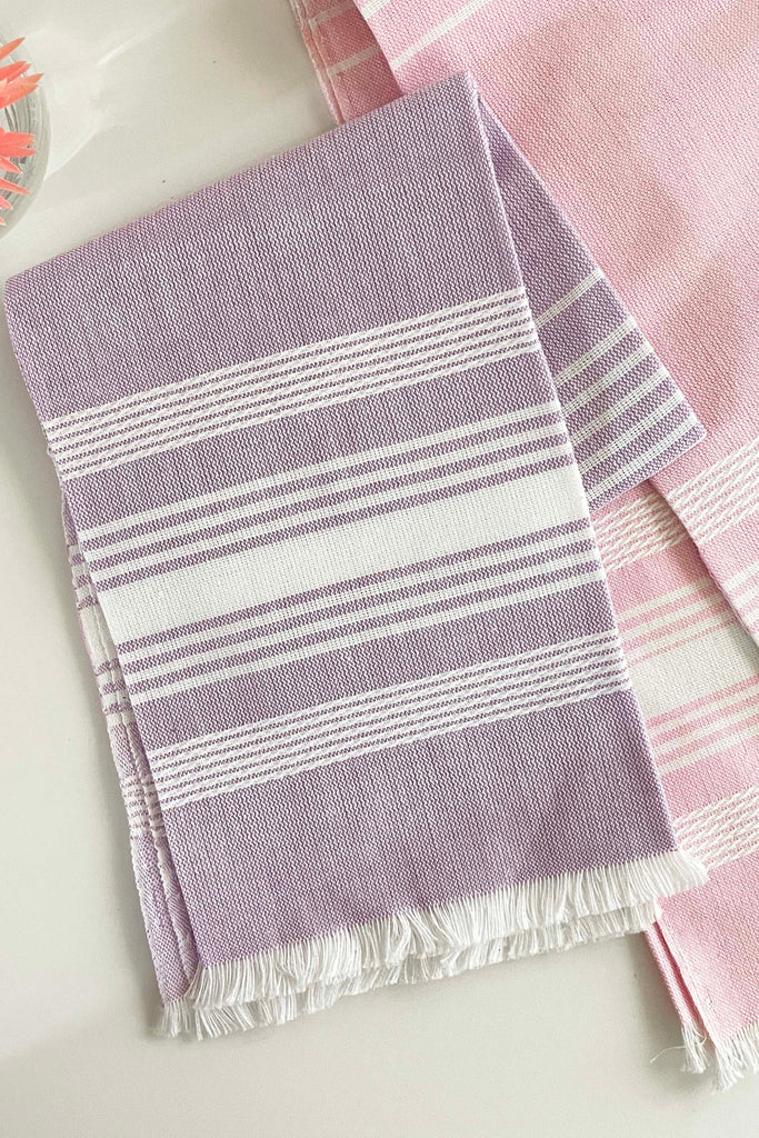 Pink and White chambray kitchen towel, handwoven by artisans in Guatemala on traditional footlooms.