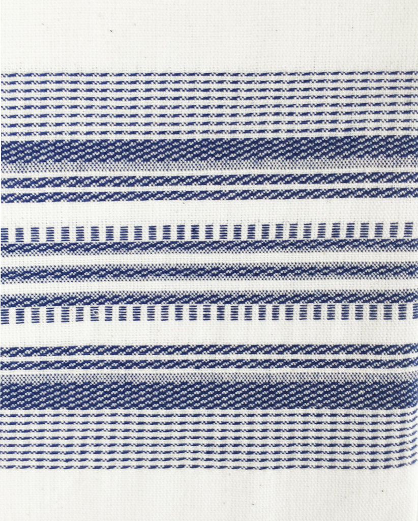 White kitchen towel with blue stripes, handwoven by artisans in Guatemala.