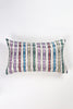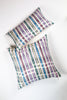 Ivory, grey and rainbow pillow, ethically handwoven by artisans in Totonicapan, Guatemala on traditional footlooms. Hand ikat (jaspe) dyed on natural white cotton.