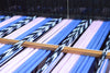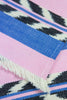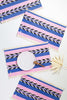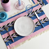 The Palm placemat is the perfect accent to add vibrant color and texture to any table setting. Pink and blue striped placemats featuring hand-dyed ikat (jaspe) on natural white cotton. Ethically handwoven by artisans in Totonicapan, Guatemala on traditional footlooms.