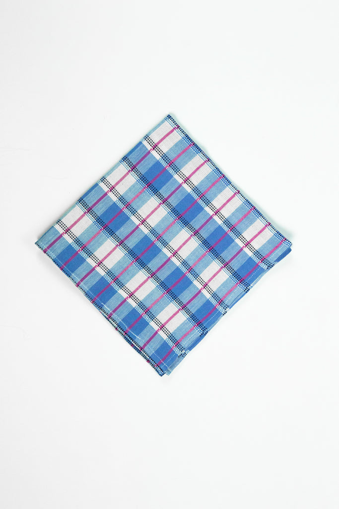 Blue & Ivory white gingham napkins, ethically handwoven by artisans in Chiapas, Mexico on traditional footlooms. With hints of hot pink and navy, this updated classic plaid will be a lively addition to any table setting or dinner party. Sold individually, or enjoy our discount on a set of 4.