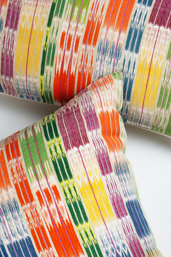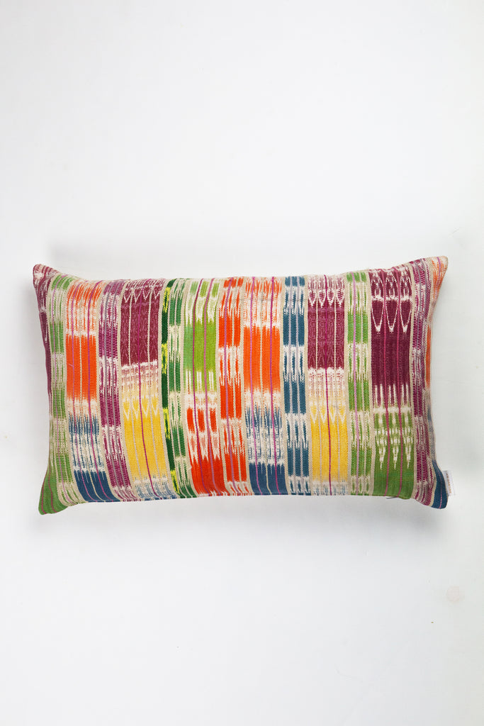 This vintage Guatemalan textile was originally a traditional skirt fabric. It is made from ikat dyed fabric and handwoven on a footloom.